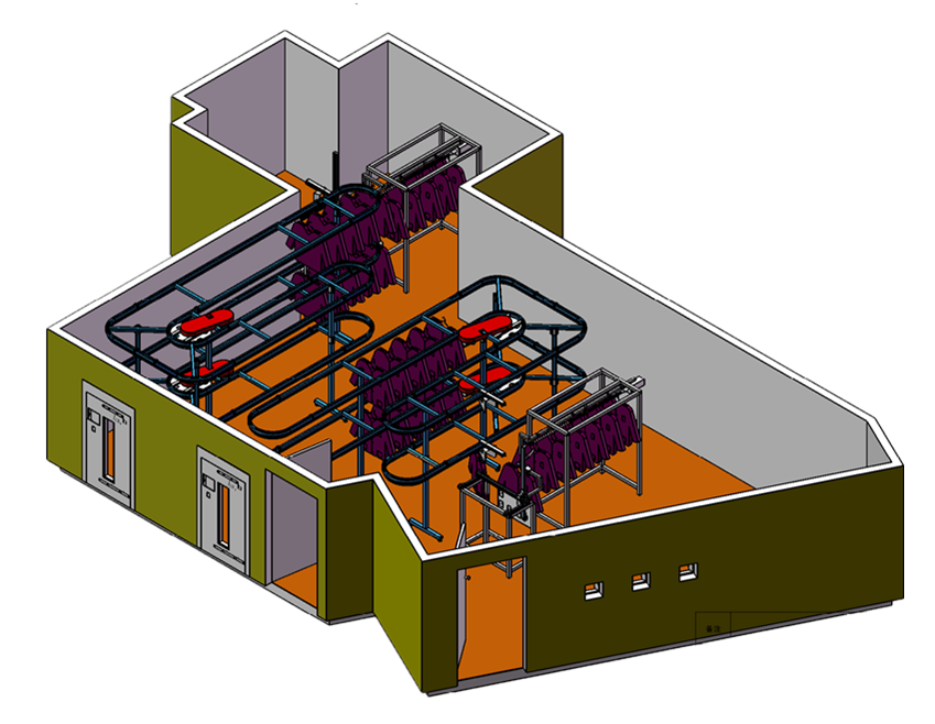 配置:输送线+RFID卡+防盗门+机械手自动挂取+资产管理
