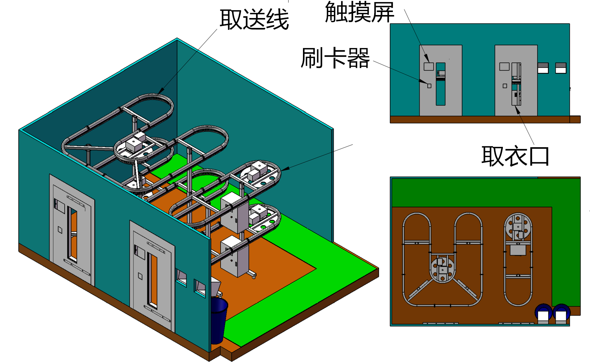 3. 节省存放衣物的空间,使用者只要扫描FRID卡就可以实现存放和取出衣物,操作简单,并配有液晶屏提示;